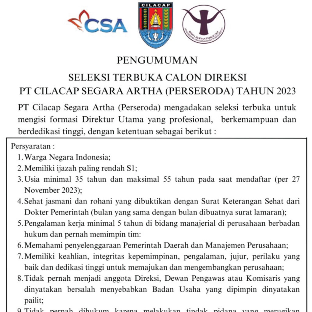 FOCUS GROUP DISCUSSION (FGD) TERKAIT HIBAH ASET MILIK PT KIW TERMASUK HAK TANAH DAN HAK PENGELOLAAN (HPL) TANAH DI CILACAP KEPADA PEMKAB CILACAP DAN PD KIC Telah Dilaksanakan Forum Group Discussion (FGD) pada 29 Februari 2024 yang berlangsung di ruang rapat Wijayakusuma dan dihadiri oleh Ibu Arie Yuriwin, yang menjabat sebagai Tenaga Ahli Menteri Agraria dan Tata Ruang/Kepala Badan Pertanahan Nasional (ATR/BPN) bidang Reforma Agraria, Asisten Perekonomian & Pembangunan Sejda Kabupaten Cilacap bapak Drs. M Wijaya Kepala Seksi Penetapan Hak & Pendaftaran pada Kantor Pertanahan Kabupaten Cilacap bapak Djoko Sutrisno Rijadi, turut hadir Bapak Chamim Direktur Utama PT Cilacap Segara Artha (Perseroda), Komisaris Utama PT KIW Bapak Prasetyo Aribowo, Komisaris PT KIW Bapak Anton Santosa, Direktur Keuangan & MR PT KIW, Bapak Riki Indrianto, Komisaris PT CSA Bapak Izkandar Zulkarnain FGD tersebut diselenggarakan dengan tujuan untuk mendapatkan pemahaman yang mendalam mengenai aspek hukum terkait proses Hak Pengelolaan Tanah . Fokus utamanya adalah pada pelaksanaan pelepasan hak atas tanah sesuai dengan ketentuan yang berlaku. Diskusi yang berlangsung di acara tersebut bertujuan untuk memperoleh pemahaman yang komprehensif mengenai proses hukum yang terlibat dalam pengelolaan lahan industri. Melalui acara ini, diharapkan bahwa para pemangku kepentingan dapat saling berbagi informasi, wawasan, serta pandangan terkait isu-isu hukum yang terkait dengan pengelolaan tanah industri. Dengan demikian, diharapkan dapat tercapai pemahaman yang lebih baik dan solusi yang lebih efektif dalam mengatasi permasalahan yang muncul dalam proses perolehan dan pengelolaan tanah untuk kepentingan industri di wilayah tersebut. =========================================PT CILACAP SEGARA ARTHA (Perseroda) Jl. Mt. Haryono No. 167 Lomanis, Cilacap Tengah, Cilacap, Jawa Tengah. Kode Pos 53222 Call Center :Telp : (0282) 5569403Marketing : +62 822 2029 6100E-mail : Cilacapsegaraartha@gmail.comWebsite : www.cilacapsegaraartha.co.id